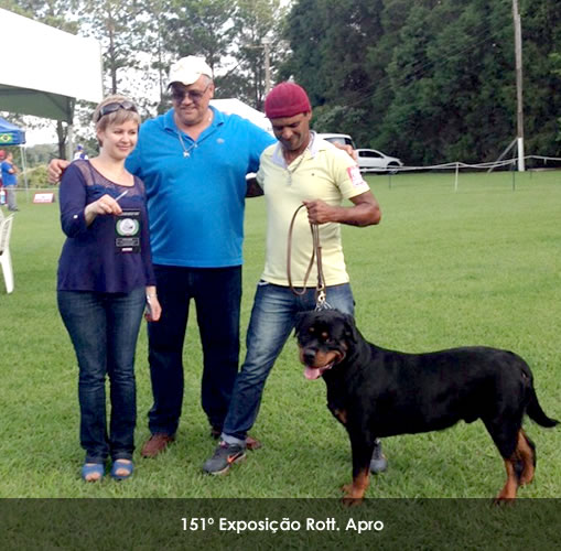 - Segundo de Classe, aos onze meses em sua estreia, na 151ª Exposição Rott. Apro, em 16/05/2015, em Araçoiaba, sobre o comando da Juíza: Tatyana Popova (Rússia)